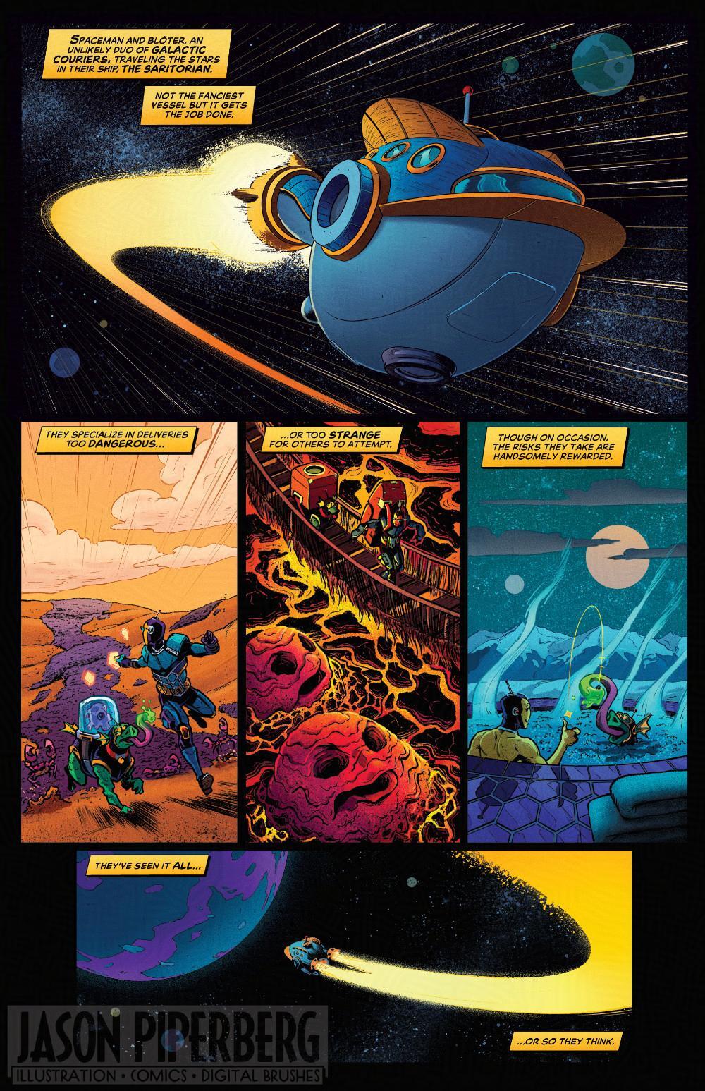 Written, illustrated, and lettered by Jason Piperberg and self-published under his Orp Comics imprint. Join galactic couriers, Spaceman and Blöter, as they explore Beltuek Cavern, visit space diners, fight bearded ice giants, and meet other creatures of the cosmos in Starset Delivery: Beltuek Cavern and Other Stories!